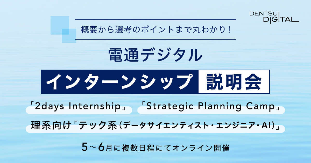 本ページでは、電通デジタルのインターンシップや関連イベントの情報を集約しています。 興味のある方は、ぜひご応募ください。