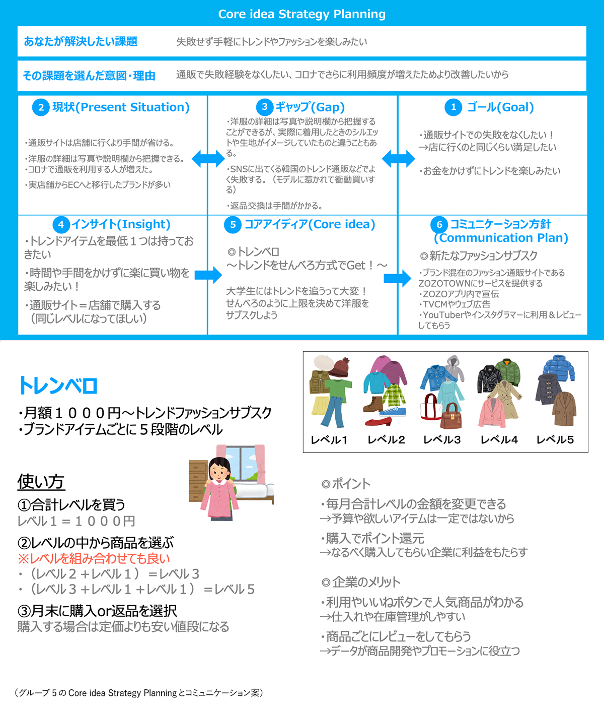 グループ5の発表:「失敗せず手軽にトレンドやファッションを楽しみたい」