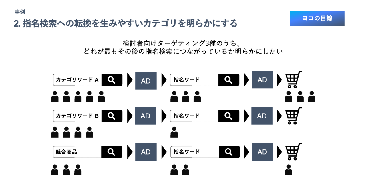 事例2 指名検索への転換を生みやすいカテゴリを明らかにする<ヨコ目線>