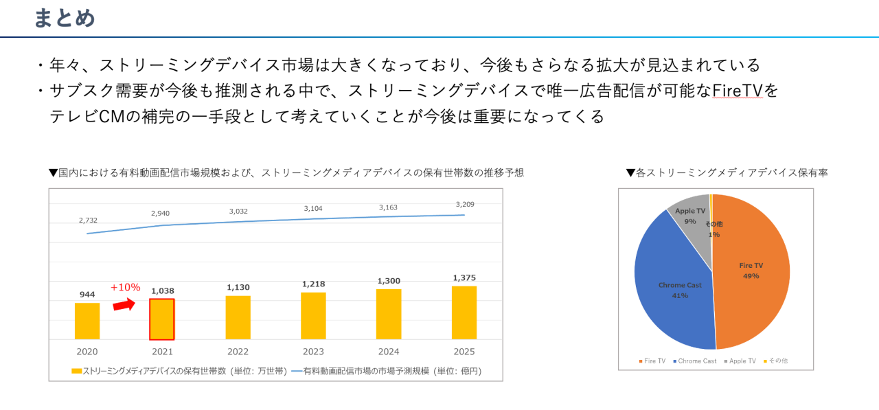 - FireTVは、現在のストリーミングデバイスの中で唯一広告配信ができるプラットフォームである。