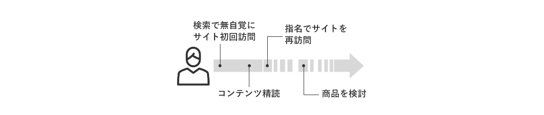 「人」を軸としたデータを取得し、人それぞれの「体験」の全体像を理解するには、顧客が企業と接する最初のタイミングから現在に至るまでの長い期間を対象とし、「購買」や「お問い合わせ」といった企業都合のコンバージョンだけでなく、その前後の行動も対象とし、総合的に行動や習慣、心理の変化を捉える必要があります。