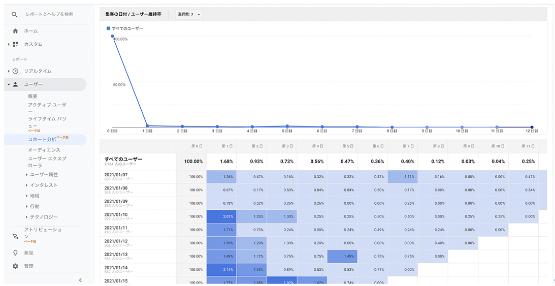 このレポートを作るためには、以前はカスタムディメンションなどを使って複雑な処理をする必要がありましたが、Adobe Analyticsには2013年10月に、Googleアナリティクスには2015年2月にコホートのレポート機能が標準装備されました。