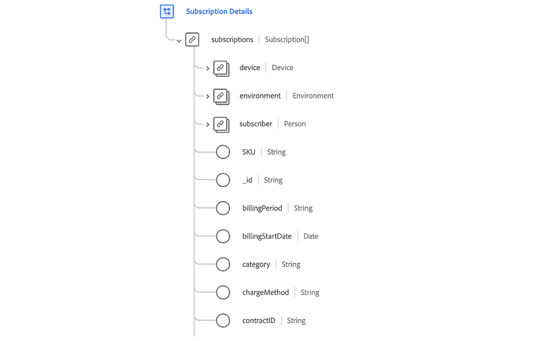 例えば、定期購入の購読開始を表すイベント「subscribe」は、以下のような構造が標準スキーマとして定義されています。