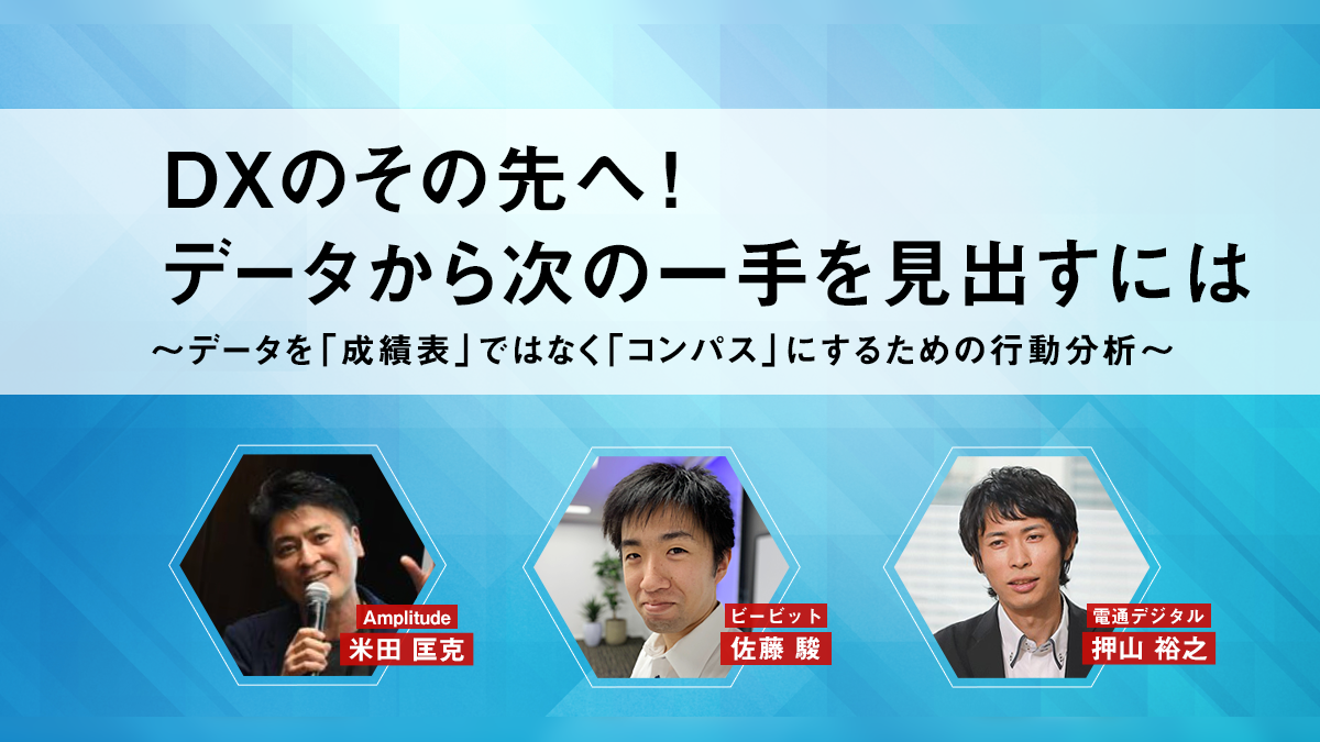 行動分析で強みをもつ3社がそれぞれ、「行動分析とは何か?」(電通デジタル)、「DX推進の次の一手」(Amplitude)、「事業グロース伸び悩みの処方箋」(ビービット)と題し、行動分析の概要や効果、具体的手法や事例を紹介します。