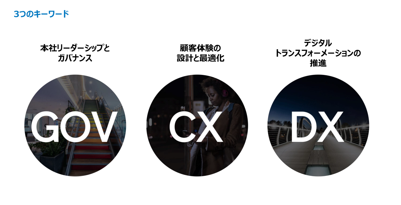 先ほど、日本企業のグローバル担当者が感じている課題として、「本社リーダーシップとガバナンス」「CXの設計と最適化」「DXの推進」の3つのキーワードを挙げました。これをもう少し掘り下げたのが以下の図です。日本企業はこの3つの視点で課題を整理し、CX/DXを推進すべきです。我々もこの3つの軸で日本企業を支援しています。
