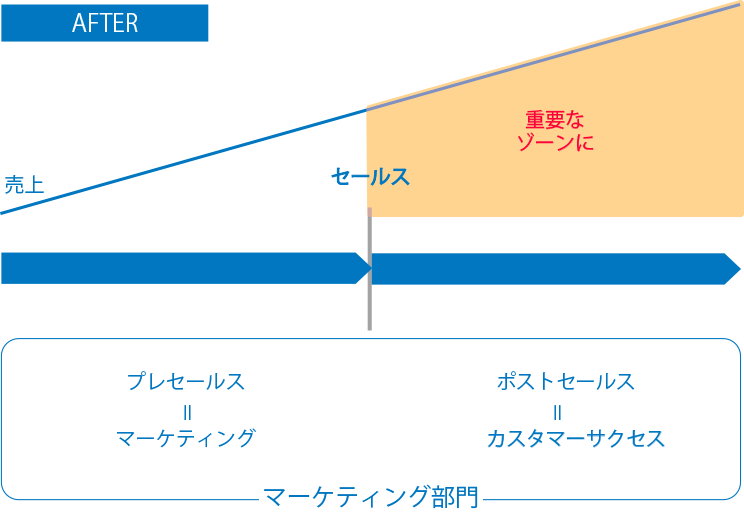 そのようにポストセールスって実は売り上げにかなり寄与するんですけれど、マーケティングは新規獲得がミッションなので、これまでは「いや、そこは範囲外です」ってなってしまっていた。カスタマーサクセスが注目された今、変わりつつあると思います。