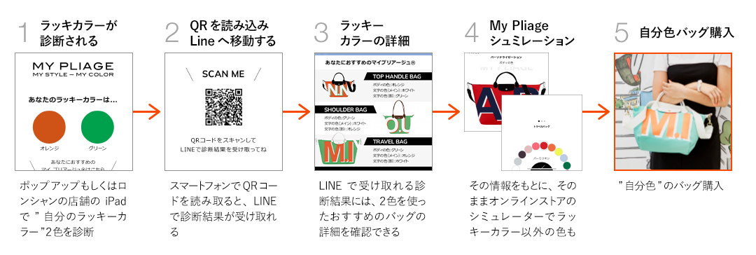 この診断は、趣向や好みを探るいくつかの質問と、性別、年齢、服の色などの情報をカメラの画像認識で判定し、カスタマーにぴったりのカラーを導き出してくれるデジタルコンテンツです(※現在は終了)。