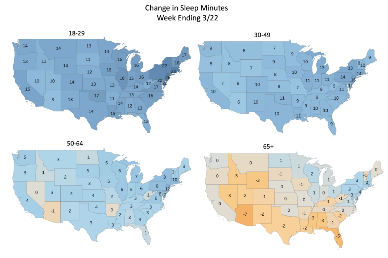 Fitbitデータによると、欧米では「睡眠時間が増加している」という傾向が見られます。