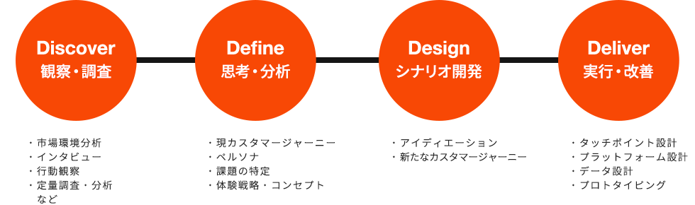 実際にCXデザインをするにあたり、潮田は、「クライアントの中には、顧客との接点を持つ部署がいくつもあるけれど、それぞれが持つ認識が必ずしも共通であるわけではないことがあります。これを共有し、CXチャートという独自に作ったツールを用いて、現状のクライアントの顧客がどのようなタッチポイントを持っているのか洗い出し、ペインポイントを整理し、先入観なしに顧客のインサイトを洗い出しつつ、カスタマージャーニーを改善して、施策に落とし込んでいく、という流れを踏み、施策を実行しています」とし、これを踏まえてCX革新を行なった事例を紹介しました。