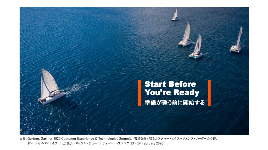 2020年2月に実施されたガートナー カスタマー・エクスペリエンス&テクノロジサミットでは、「Start Before You’re Ready - 準備が整う前に開始する」ことが重要であると述べられました。