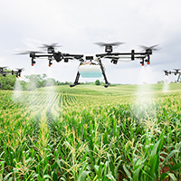ドローンやカメラ、センサーを搭載したロボットによって、農業の農薬散布や収穫作業を行います。