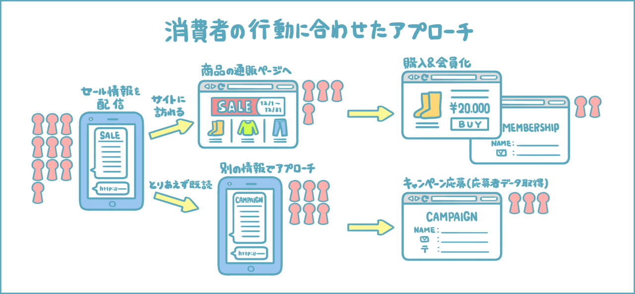 また、一度情報を伝えたあとに、続けてどのような働きかけをするかがデジタルマーケティングの重要な部分です。