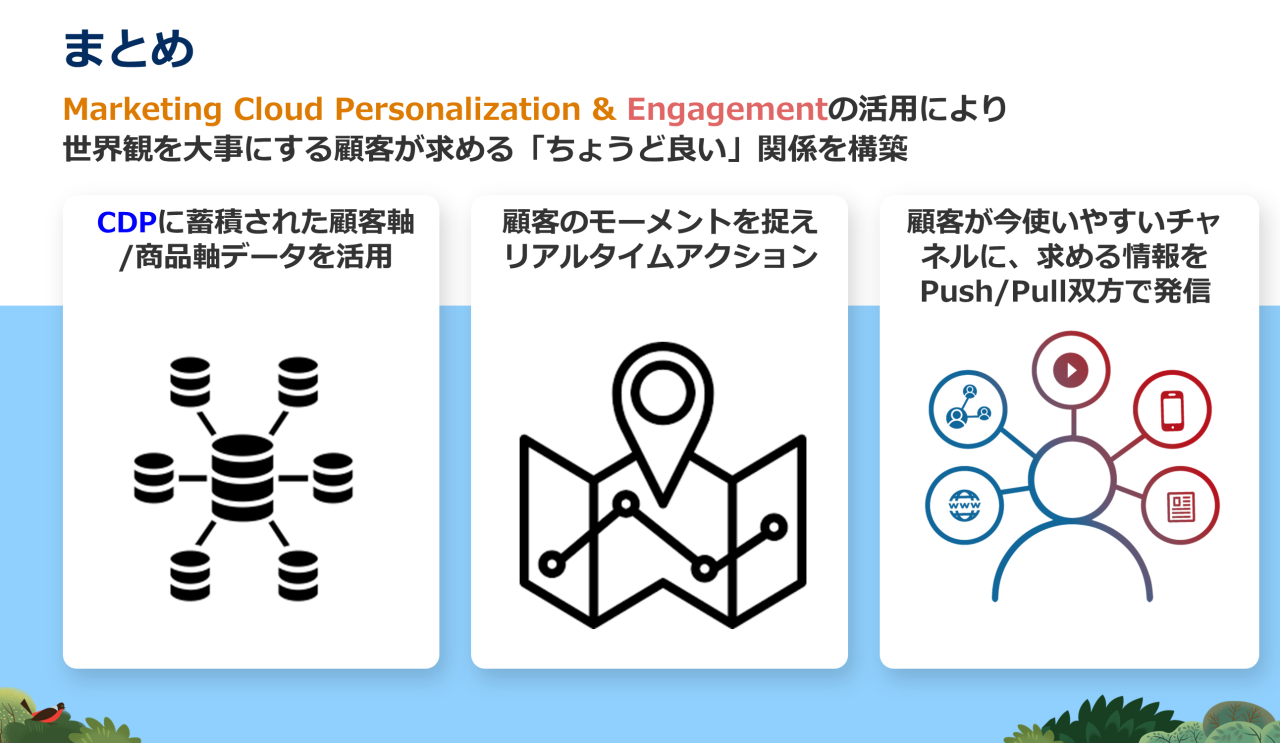 CDPと連携して「Marketing Cloud Personalization」「Marketing Cloud Engagement」を活用することで、