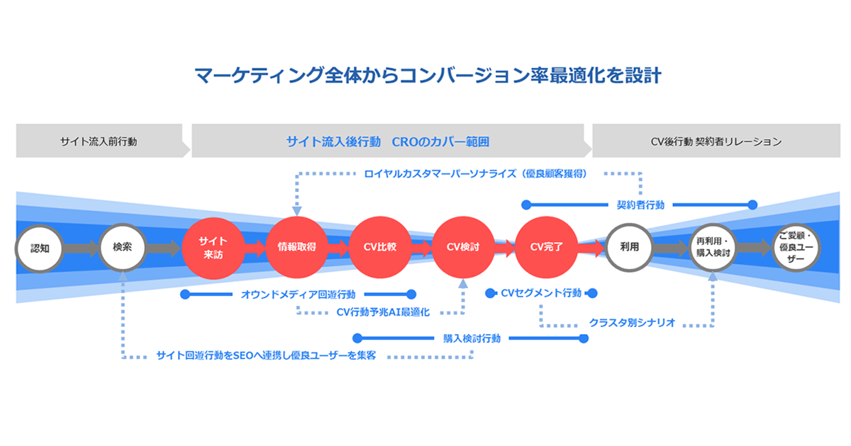この2つを掛け合わせてCROを実施することにより、全体最適からパーソナライズによる個客獲得まで、Webサイトの課題に応じて、多角的にクライアント企業の売り上げをグロースさせることができるのです。