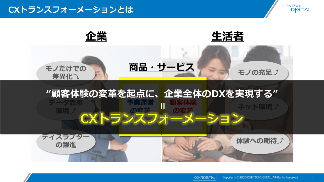 電通デジタルでは、現在のコロナ禍に対する一つの解決策として、顧客体験を起点としてデジタルトランスフォーメーションを進めていく「CXトランスフォーメーション」という方法を提案しています。