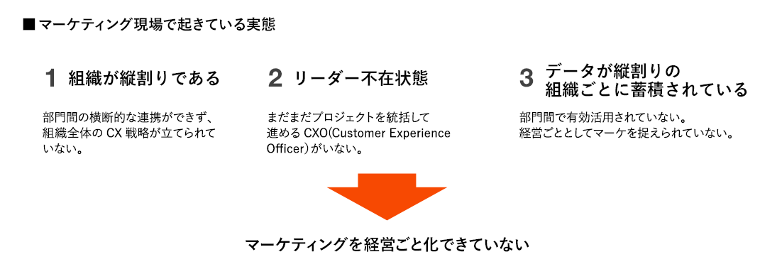 企業やブランドがCX戦略を実行するにはどうすればいいか、足立はまず日々マーケティングの現場で感じる問題点を洗い出しました。