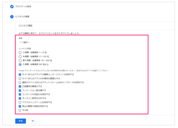 記入が終わったら[作成]をクリックします。これでプロパティの作成は完了です。