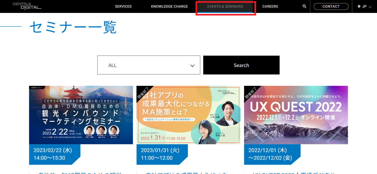 馬場 : グローバルナビゲーションに「EVENTS & SEMINARS(イベント・セミナー)」があり、ここからもLPへ流入する可能性があります。