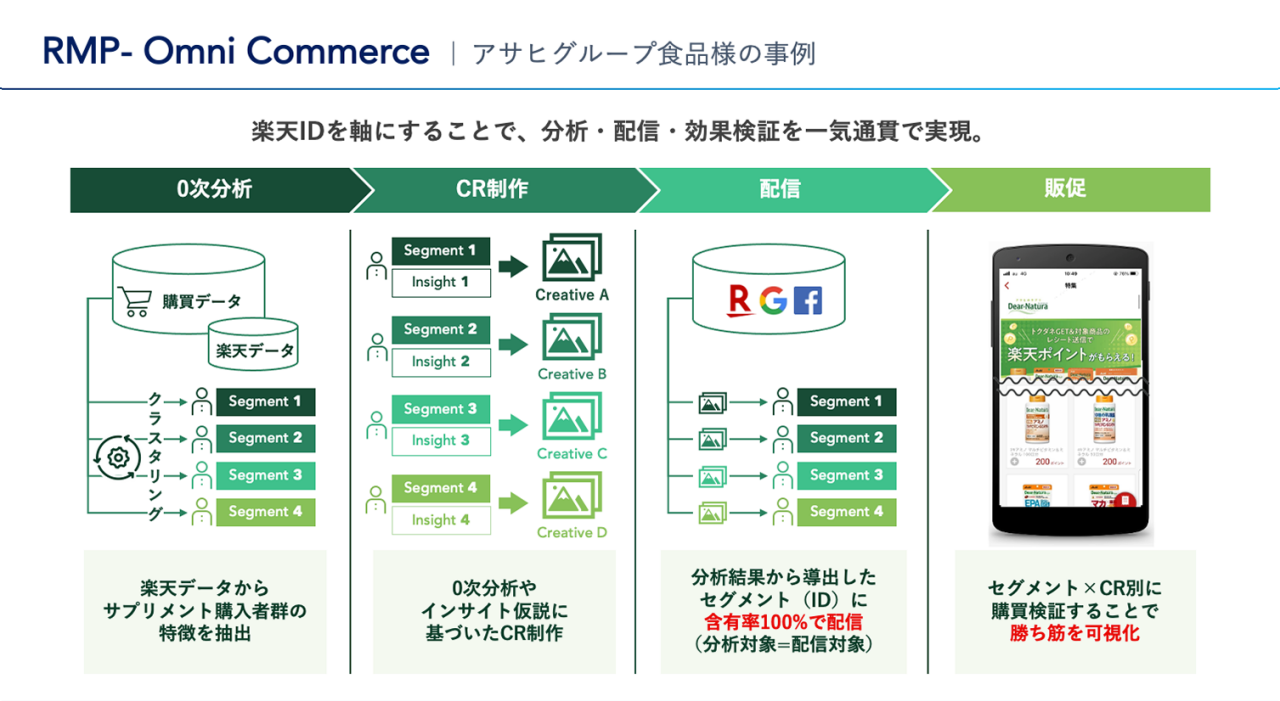 ――2022年9月、楽天グループと電通デジタルの協業により、楽天データを活用した運用型広告プラットフォーム「RMP - Connect」の先行運用が開始されました[2]。こちらを活用したマーケティング事例について教えてください。