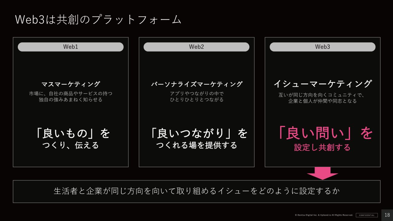 Web3の世界は、「良い問い」を設定し、共創する取り組みを作ることが大事になる「イシューマーケティング」の時代になると考えています。