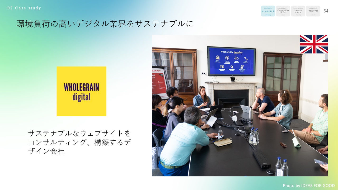 そして、イギリスのWHOLEGRAIN digitalは、サステナブルなWebサイトのコンサルティング、構築をするデザイン会社です。