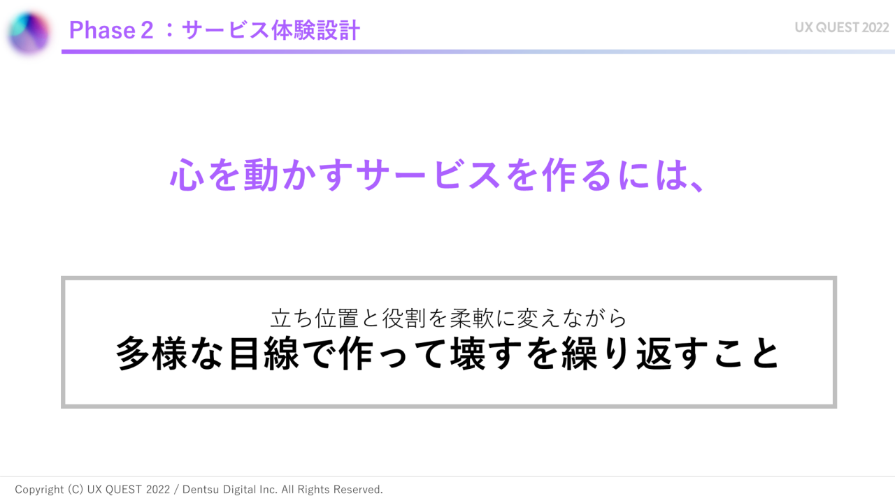 岩崎 : 続いて、フェーズ2のサービス体験設計フェーズです。サービス戦略仮説と体験設計は何度か往復しました。
