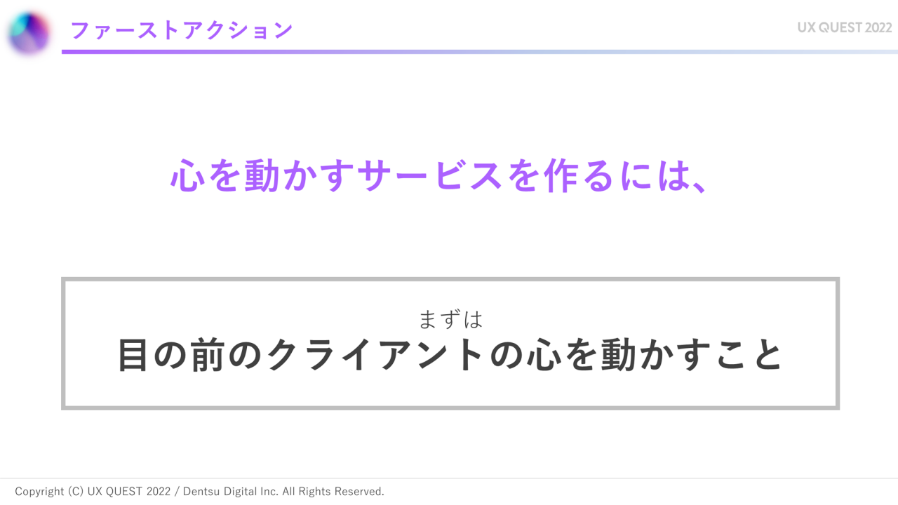 電通デジタルは今回のプロジェクトに途中から参加させていただきました。我々の「ファーストアクション」は、クライアントの議論内容を2時間のインプットで共有するところからのスタートです。