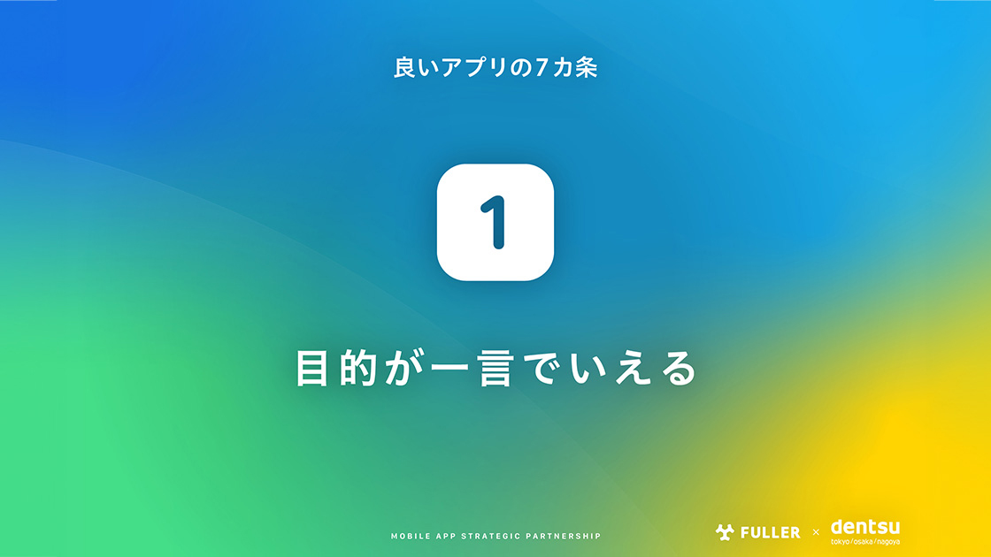 今回は一つ目の「目的が一言でいえる」を解説します。この条件は、7カ条の中でも私たちが普段のアプリ開発で特に意識していることです。何のためのアプリなのかをわかりやすく定義すると、アプリを使ってもらいやすくなります。