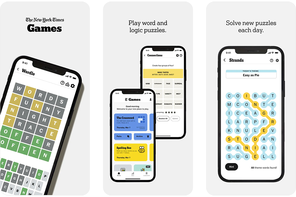 他の事例も紹介します。ニューヨークタイムズはゲーム事業を営んでいますが、同社のゲームアプリ「NYT Games」は、同社の大きな収益の柱となっています。数億円規模で買収したことで有名になった人気ゲームのワードルも、このアプリの中でプレーすることができます。