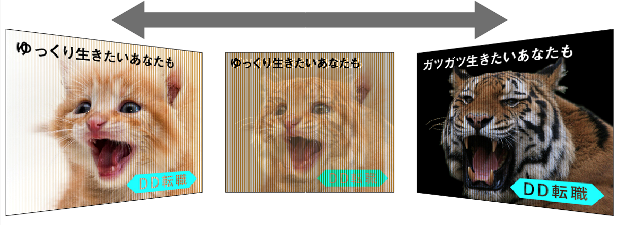 スマートフォンの傾きを感知し、2種類の画像を交互に表示し、