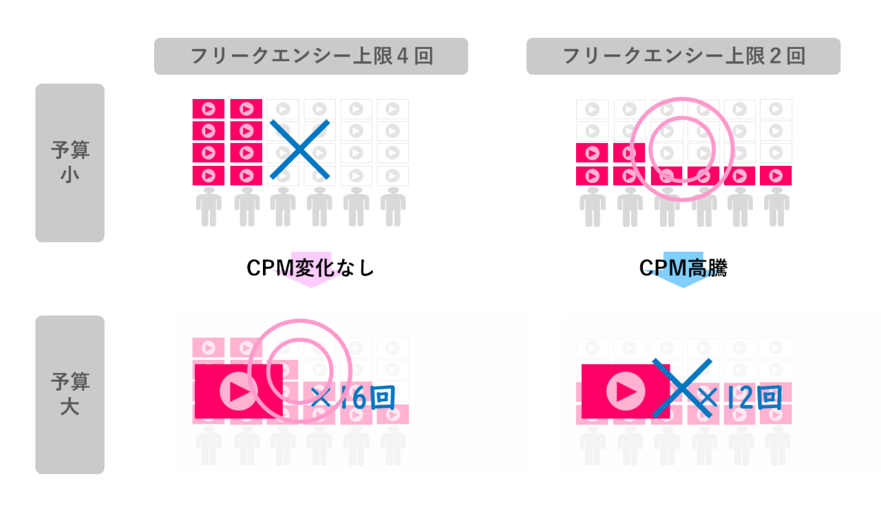 図:広告予算とフリークエンシー上限回数設定ごとの広告効果の関係性