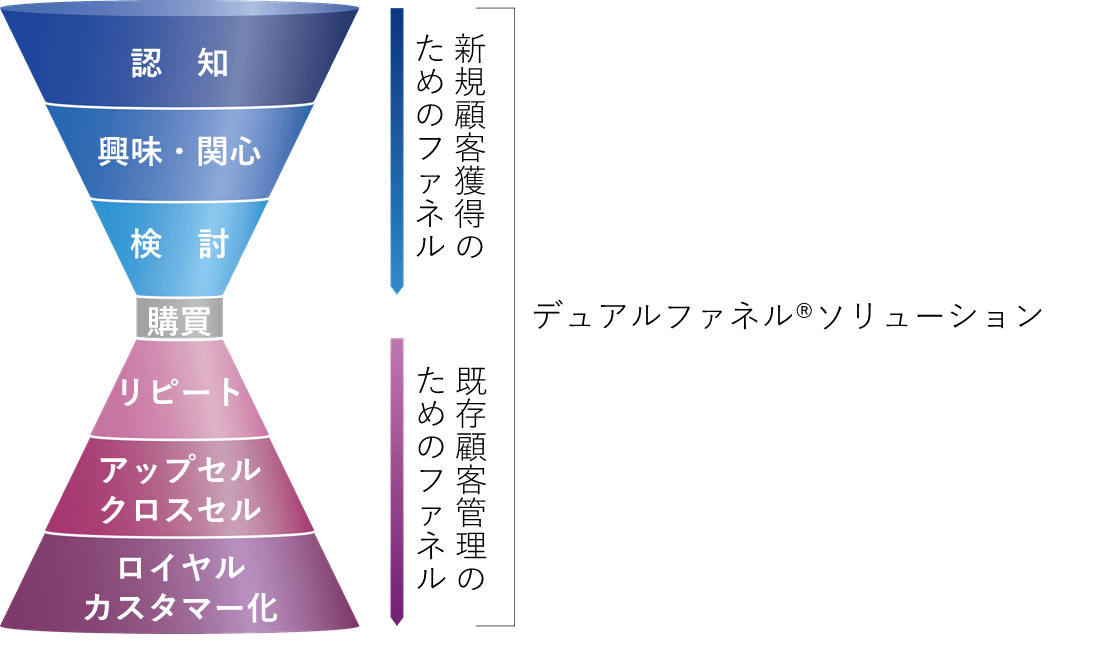 としてデュアルファネルを3つの塊に分け、その関係性を解き明かすことで、施策の予算アロケーションやPDCAを円滑に進めていくためのフレーム