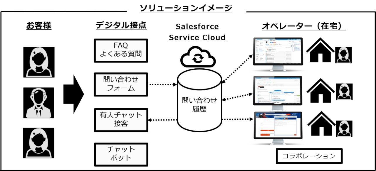 株式会社電通デジタル(本社:東京都港区 代表取締役社長:川上 宗一 以下、電通デジタル)は、セールスフォース・ドットコムが提供するクラウド型カスタマーサービスプラットフォーム「Salesforce Service Cloud」を活用した「在宅勤務下における顧客対応支援ソリューション」の提供を開始しました。クラウド上にて顧客対応に必要な機能やサービスを一気通貫で行い、在宅勤務下においても最適なカスタマーサポートを実施可能にします。