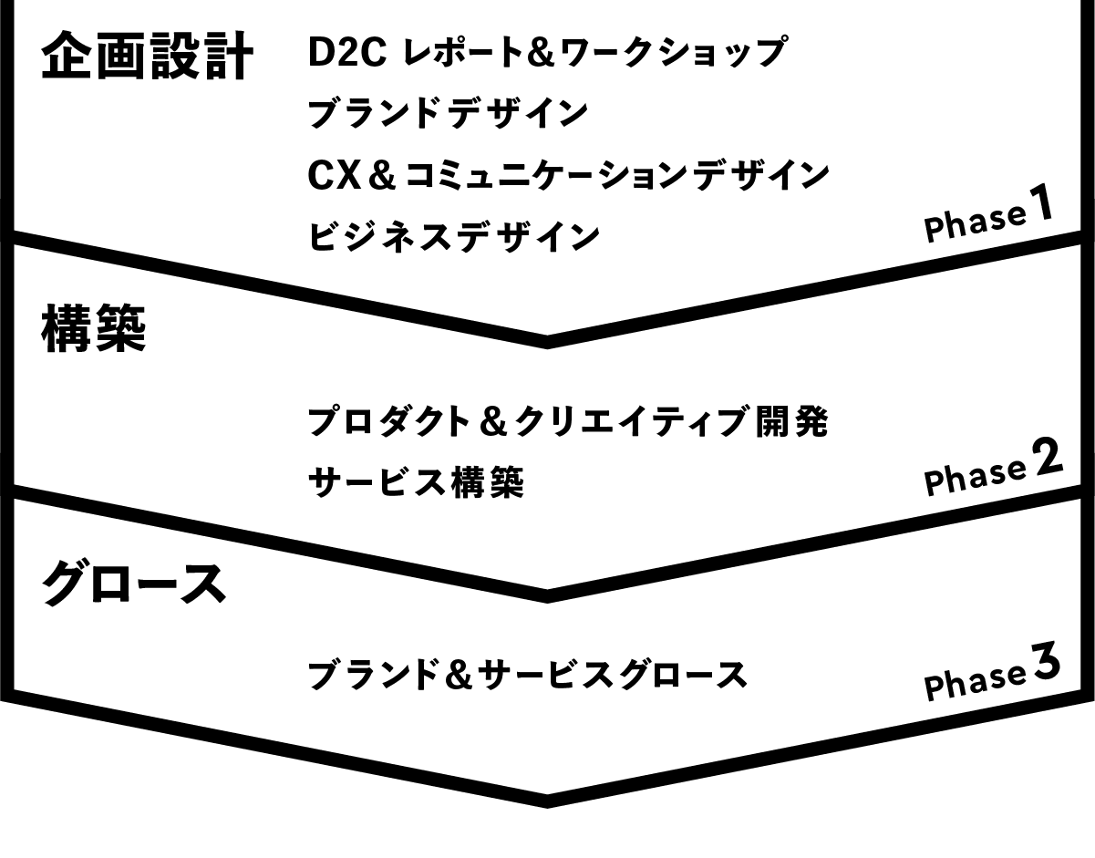 ブランド認知を獲得するためのプロモーションや広告の設計・構築、顧客の共感を生み、共創関係を構築するためのコンテンツやチャネルの開発、CX&コミュニケーションデザインを体現する販売チャネルの構築を行います。