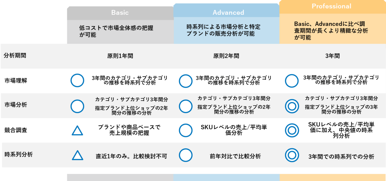 Basicの分析に加え、SKUレベルの売り上げ・平均単価分析を行い、競合調査を行います。 -