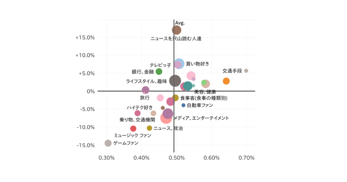 「Affinity Visualizer」でユーザー群を興味関心別に分析したバブルチャート