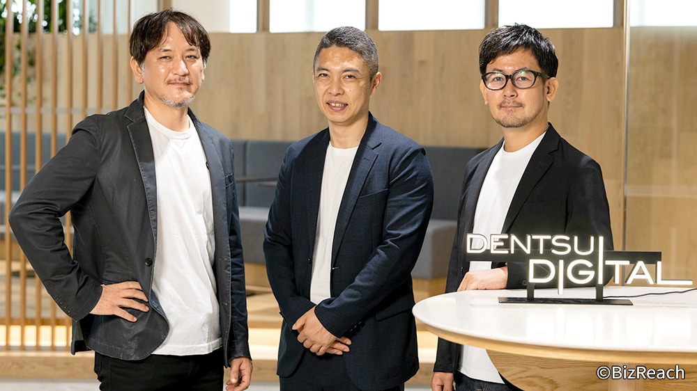 デジタルマーケティングのリーディングカンパニーとして、コンサルティングから事業開発、実行支援まで統合的な価値を提供する電通デジタル。そのなかでテクノロジートランスフォーメーション部門は、顧客基点のDX(デジタルトランスフォーメーション)をテクノロジーの力によって推進することをミッションとしています。テクノロジートランスフォーメーション部門の強みや担う領域について、同部門をリードする部門長と、各事業部長の3名にお話を伺いました。