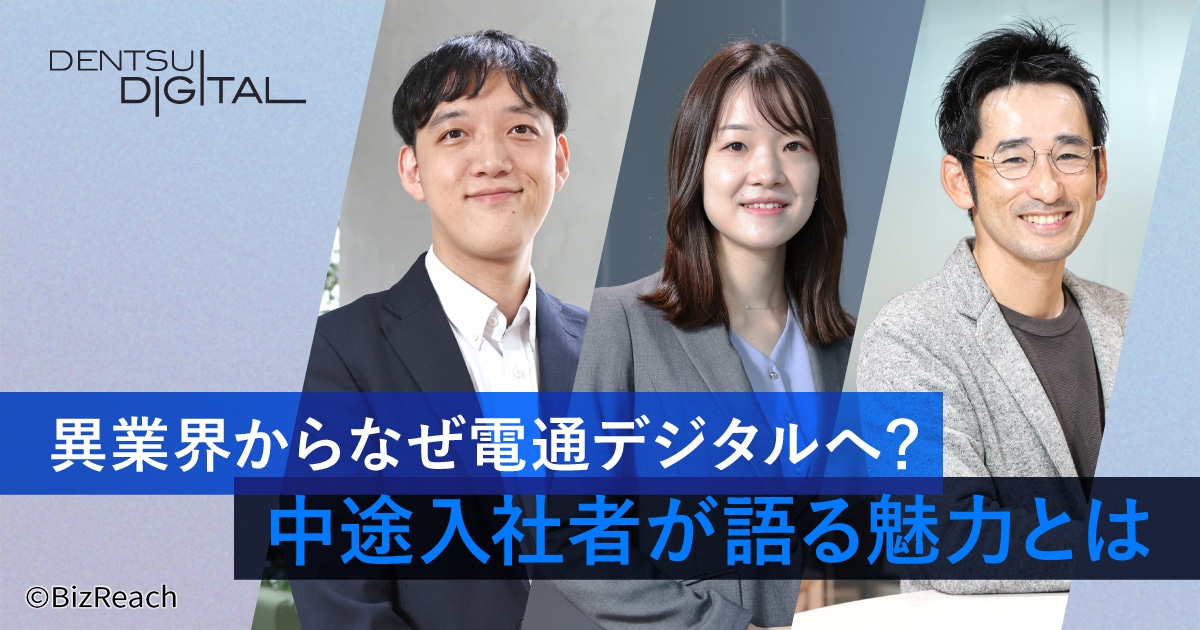 DX(デジタルトランスフォーメーション)やデジタルマーケティングなど、顧客の課題に対して柔軟で多面的なソリューションを提供する電通デジタルのITコンサルタント。定められたソリューションの導入支援のみにとどまらず、電通グループの豊富なアセットを活用して企画立案から実行までワンストップで支援できる点が強みです。同社で働く魅力について、異業界から中途入社し活躍中の3名にお話を伺いました。