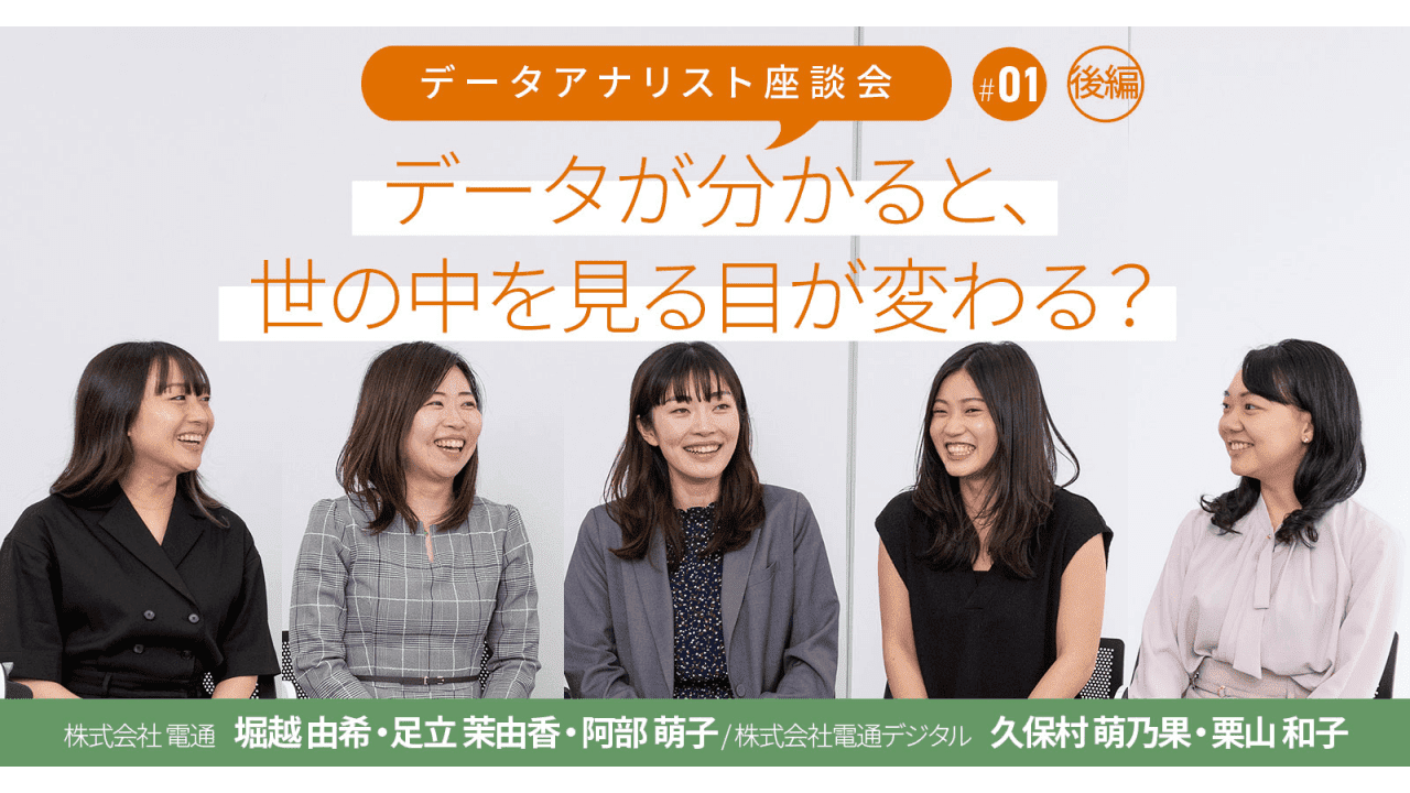 電通グループに所属するデータアナリストたちによる座談会。その素顔や仕事に対する思いを感じていただけたでしょうか。多くのデータアナリストが、データと誠実に向き合い、さまざまな課題解決のため日々データの可能性を追求しています。