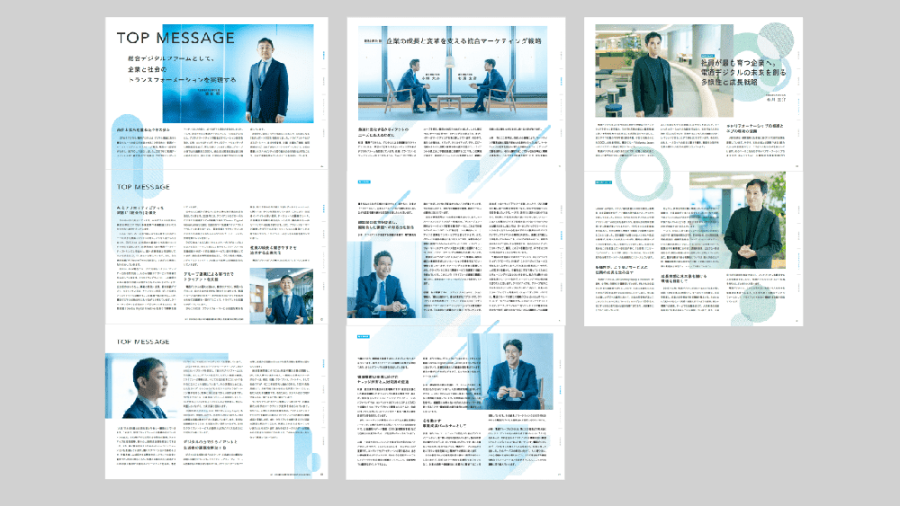 伊藤:瀧本社長のトップメッセージから始まり、それを受けて各事業責任者が担当領域を深掘りしていく構成になっています。後半では、企業を支える基盤として、サステナビリティをテーマに未来を見据えた取り組みを紹介しています。上場企業の開示基準も意識しながらではありますが、表現の自由度が高い状況も生かして、私たちの伝えたいメッセージを盛り込んで制作しました。