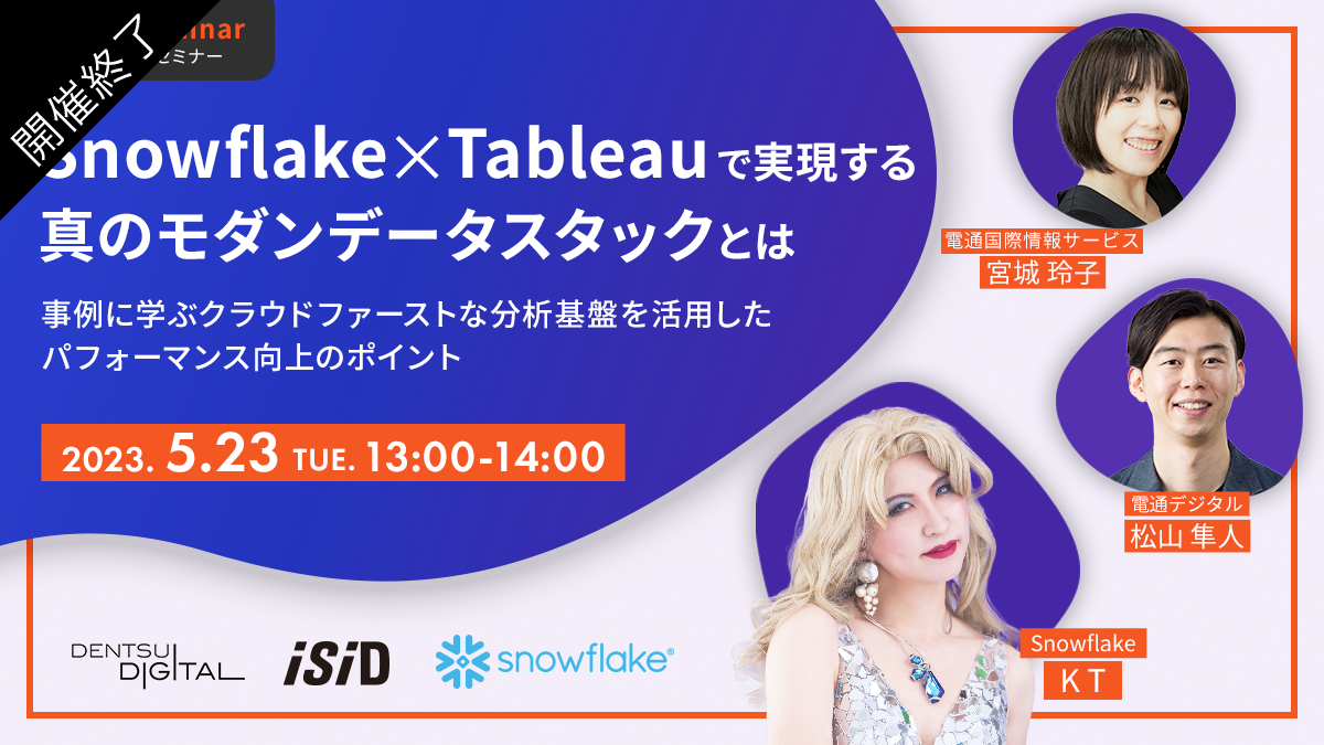 電通デジタル/電通国際情報サービスのソリューションとそれを支えるSnowflakeの技術をご紹介し、データ分析基盤の構築方法やTableauの運用…