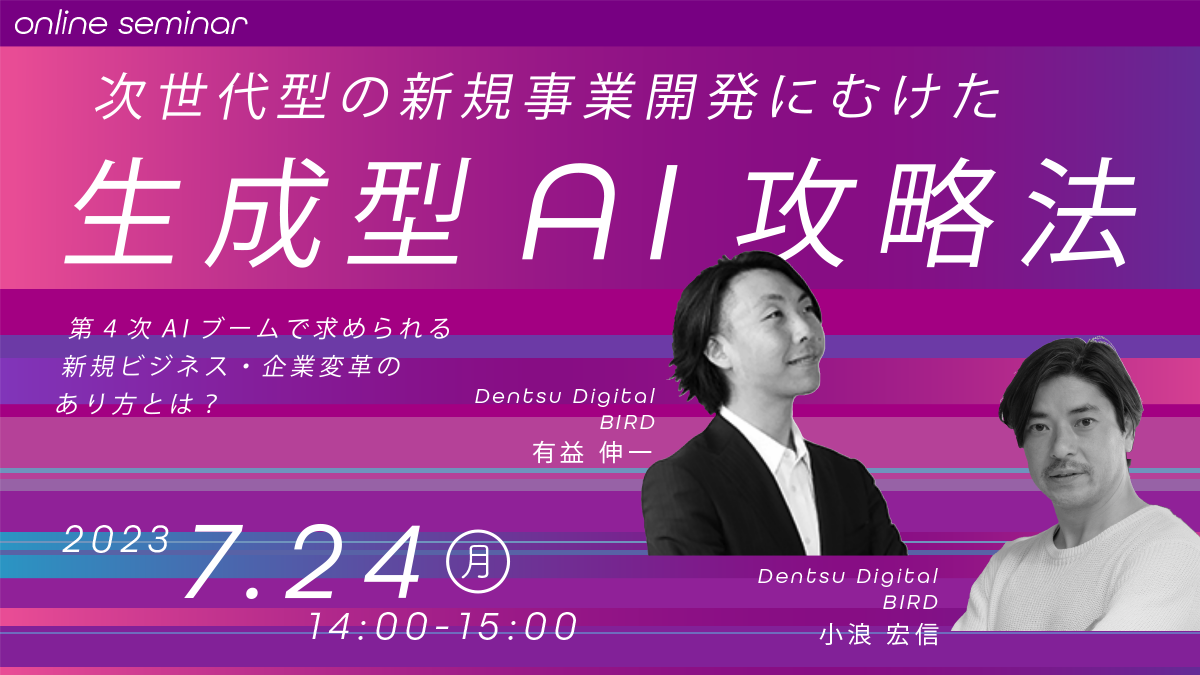 本セミナーでは、生成型AIを活用した新規事業開発・ビジネス変革に留まらず、生成型AIを経営に実装するためのポイントまでを、専門家が業界トレンドや事例を交えながらご紹介します。