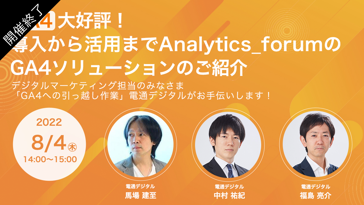 ユニバーサルアナリティクスが、いよいよ一年後に計測停止およびサポートが終了します。 それを受け、電通デジタルでは多くのお客さまから...