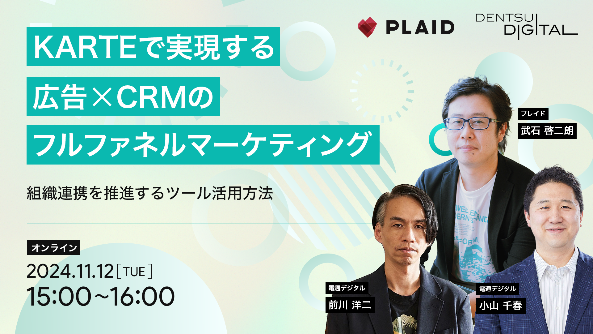 本セミナーでは、上記課題を解決するためのポイントと、打ち手の1つとしてKARTEを用いたフルファネルマーケティングの実現方法を 電通デジタルの広告×CRMチームとプレイドよりご紹介をさせていただきます。