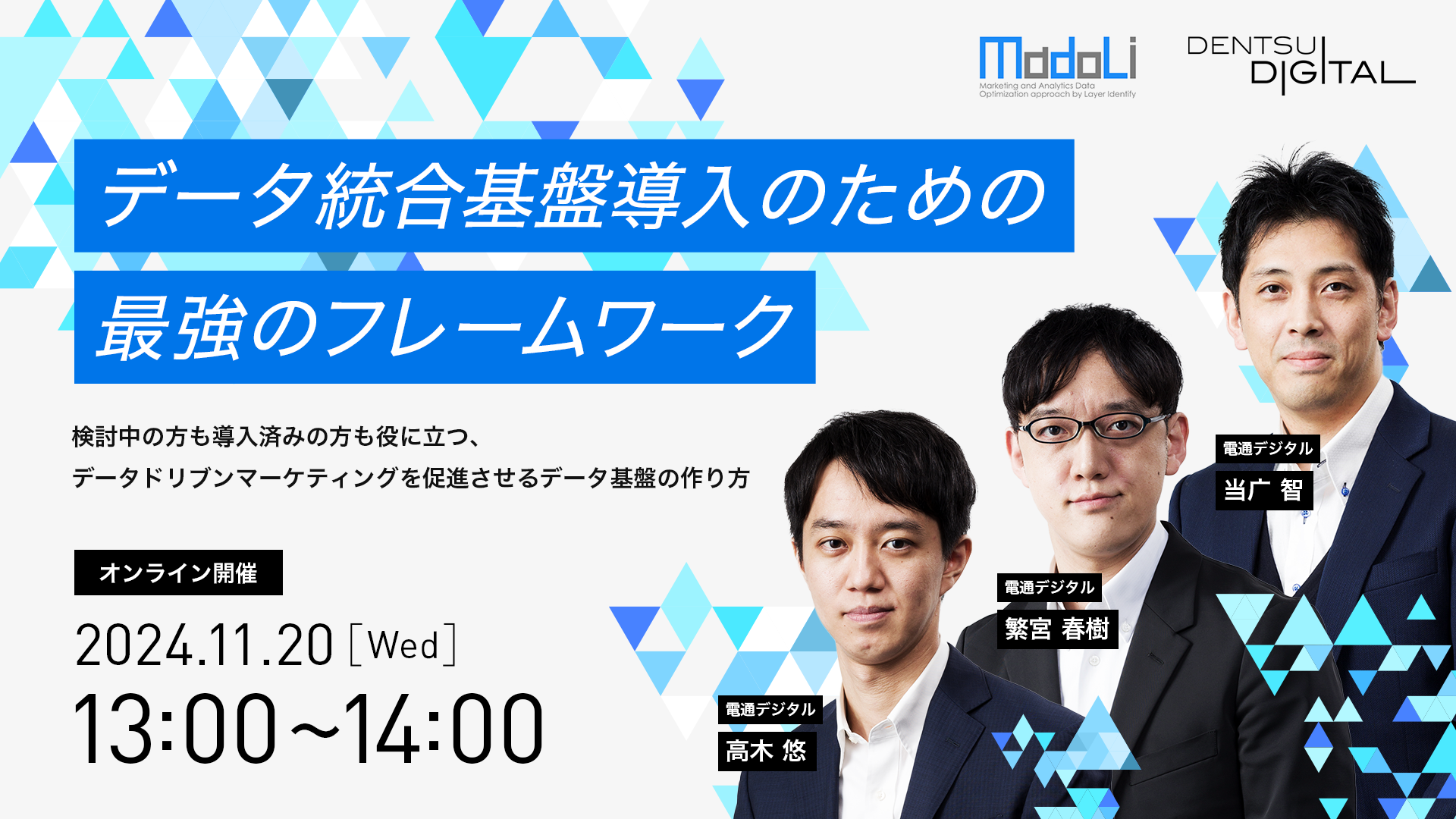 本セミナーでは、数多くのデータドリブンマーケティングを支援してきた電通デジタルの知見やノウハウを基に作成した、データ統合基盤の導入、活用や改善に最適なフレームワークをご紹介します。