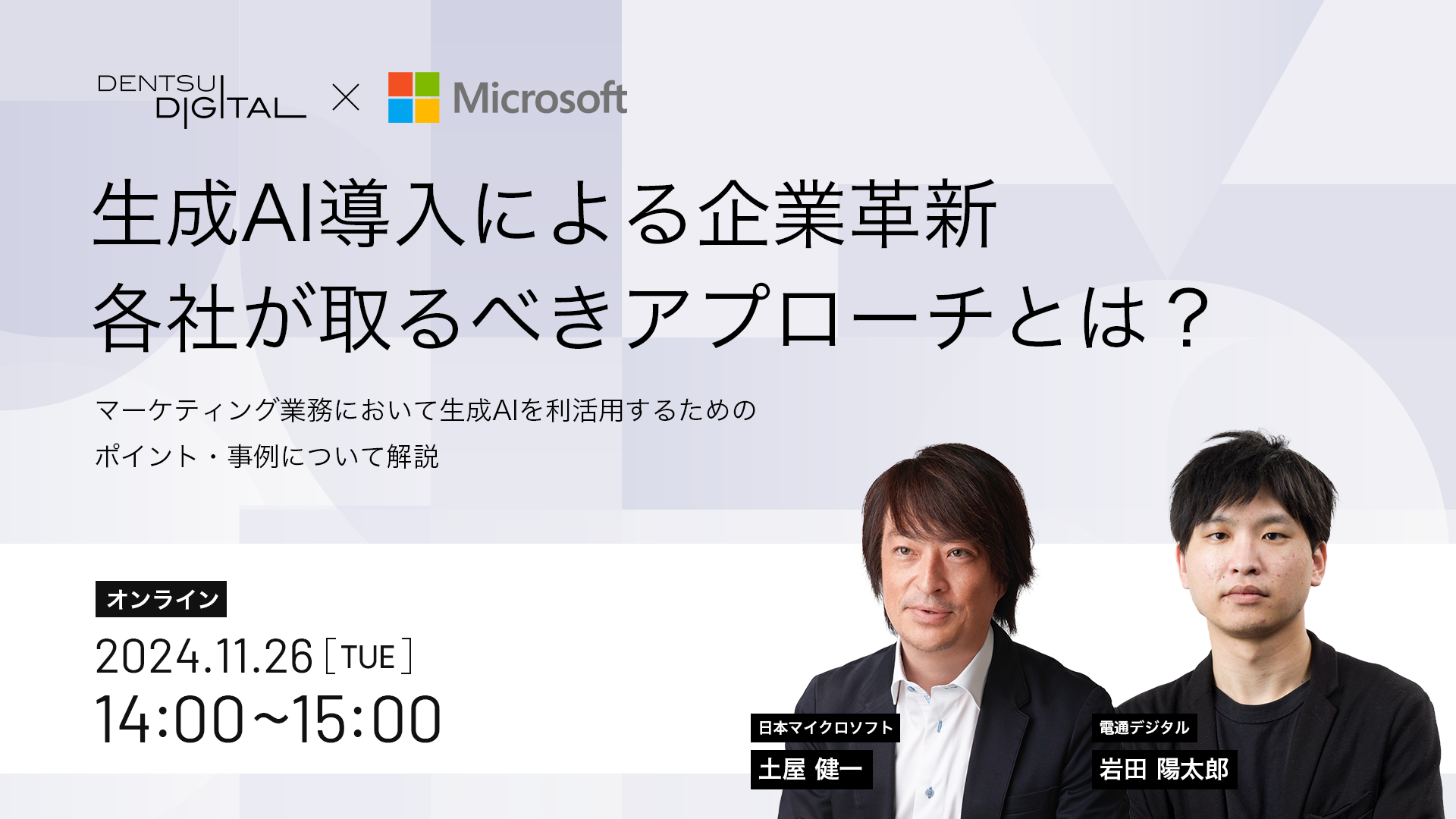 電通デジタル × Microsoft 生成AI導入による企業革新:各社が取るべきアプローチとは? マーケティング業務において生成AIを利活用するためのポイント・事例について解説