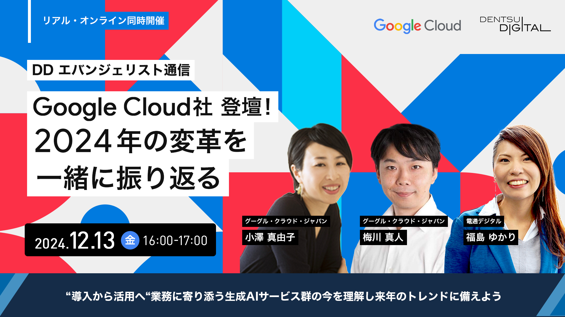 DDエバンジェリスト通信|Google Cloud社 登壇!2024年の変革を一緒に振り返る “導入から活用へ“業務に寄り添う生成AIサービス群の今を理解し来年のトレンドに備えよう