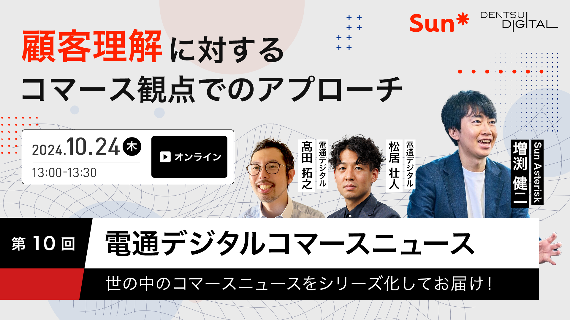 2024年のコマース業界はどうなるのか、シリーズ第10回は、「顧客理解に対するコマース観点でのアプローチ」です。顧客を理解した上での企業側のアプローチはもはや当たり前となっており、BtoBでもBtoCでも共通の話題となっています。今回はコマースをテーマに、BtoCにおける顧客エンゲージメントを高めるEC連携の事例、BtoBビジネスにおけるEC活用と顧客エンゲージメントを高めるコミュニケーション手法や営業DXについて等、BtoB・BtoCに共通する幅広いテーマでお伝えいたします。