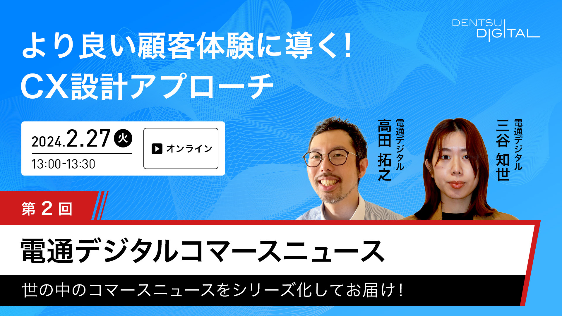 電通デジタルコマースニュース。第2回目は、コマース業界のトピックスと、電通デジタルのCX設計プロセスをご紹介します。