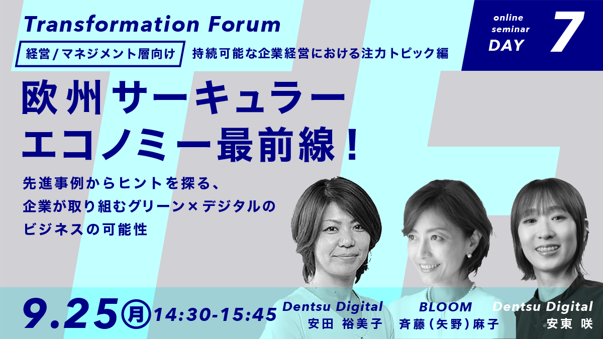 電通デジタルでは、サーキュラーエコノミーの先進的取り組みを探るべく、ロンドン・パリ・アムステルダムを視察しました。 本プログラムでは、そこで出会った活動事例を紹介しながら、今後日本企業がどのようにしてサーキュラーエコノミーをビジネスに取り組むべきかを考えます。